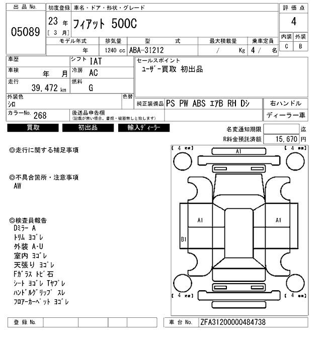 Fiat 500c, 2011 года - Лот№5089 ★4