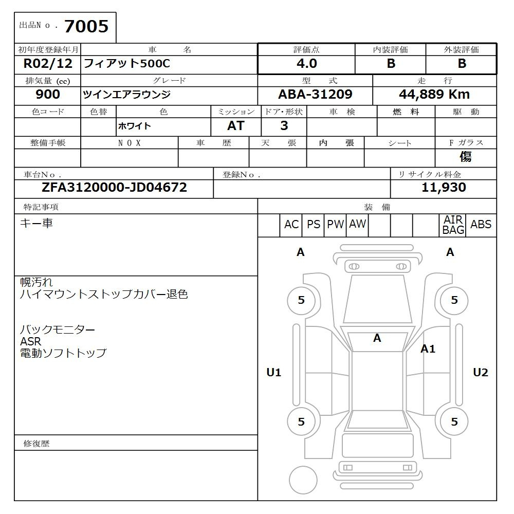 Fiat 500c, 2020 года - Лот№7005 ★4