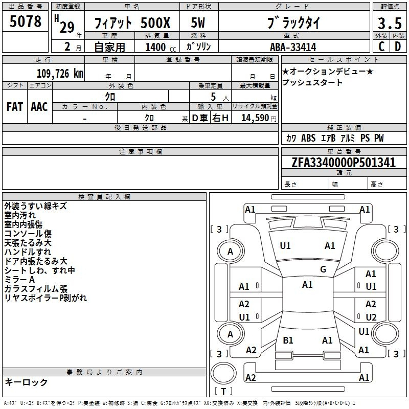 Fiat 500x, 2017 года - Лот№5078 ★3.5