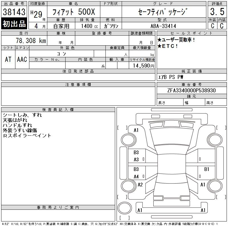 Fiat 500x, 2017 года - Лот№38143 ★3.5