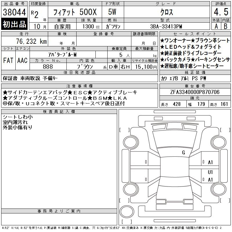 Fiat 500x, 2020 года - Лот№38044 ★4.5