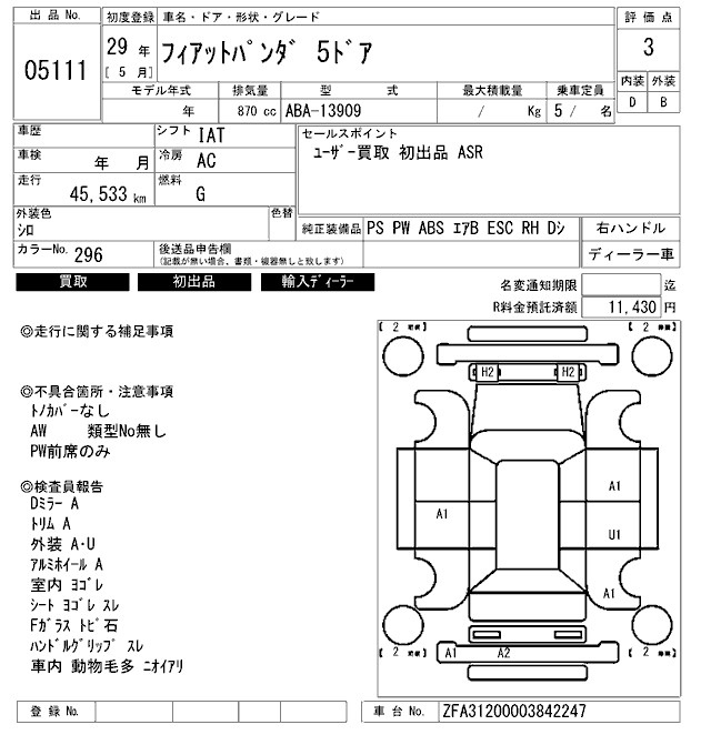 Fiat Panda, 2017 года - Лот№5111 ★3