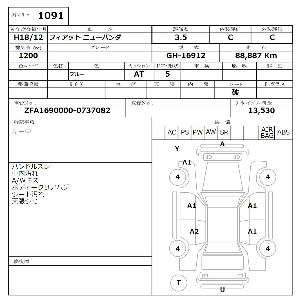 Fiat Panda, 2006 года - Лот№1091 ★3.5