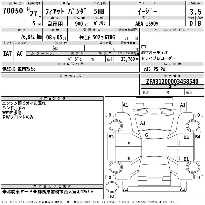 Fiat Panda, 2015 года - Лот№70050 ★3.5