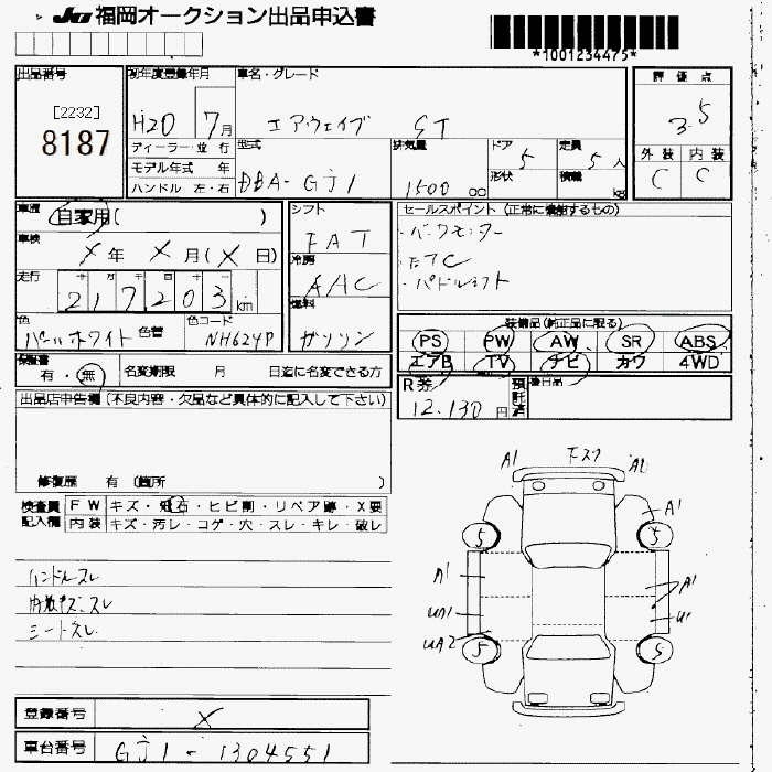 Honda Airwave, 2008 года - Лот№8187 ★3.5