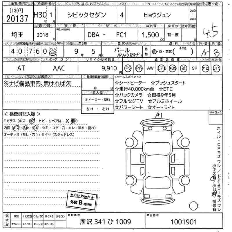 Honda Civic, 2018 года - Лот№20137 ★4.5