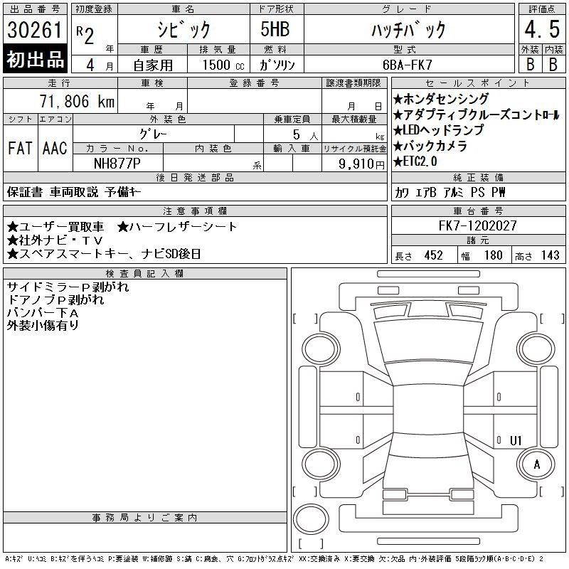 Honda Civic, 2020 года - Лот№30261 ★4.5
