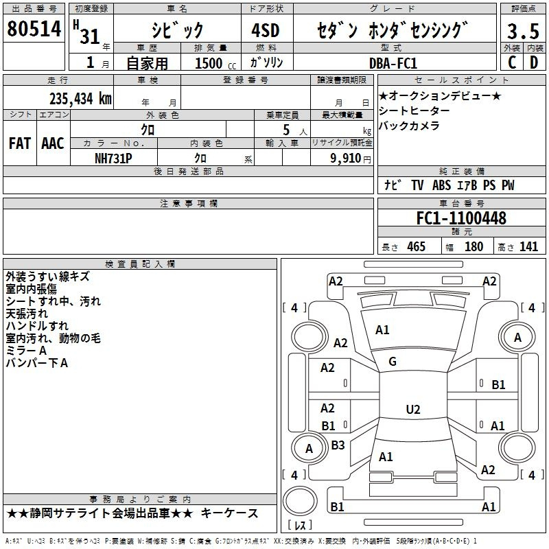 Honda Civic, 2019 года - Лот№80514 ★3.5