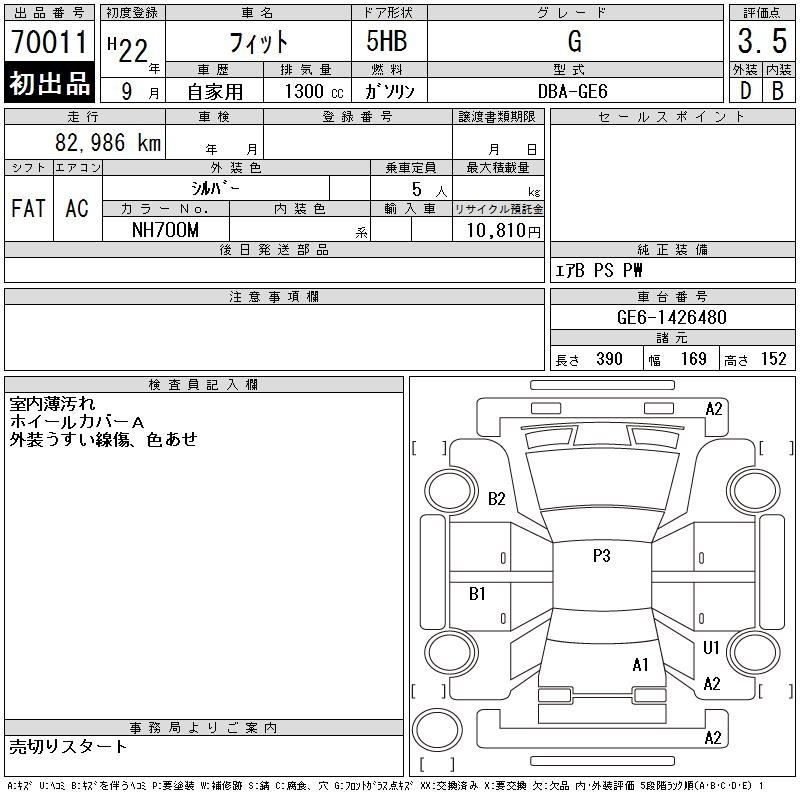 Honda Fit, 2010 года - Лот№70011 ★3.5