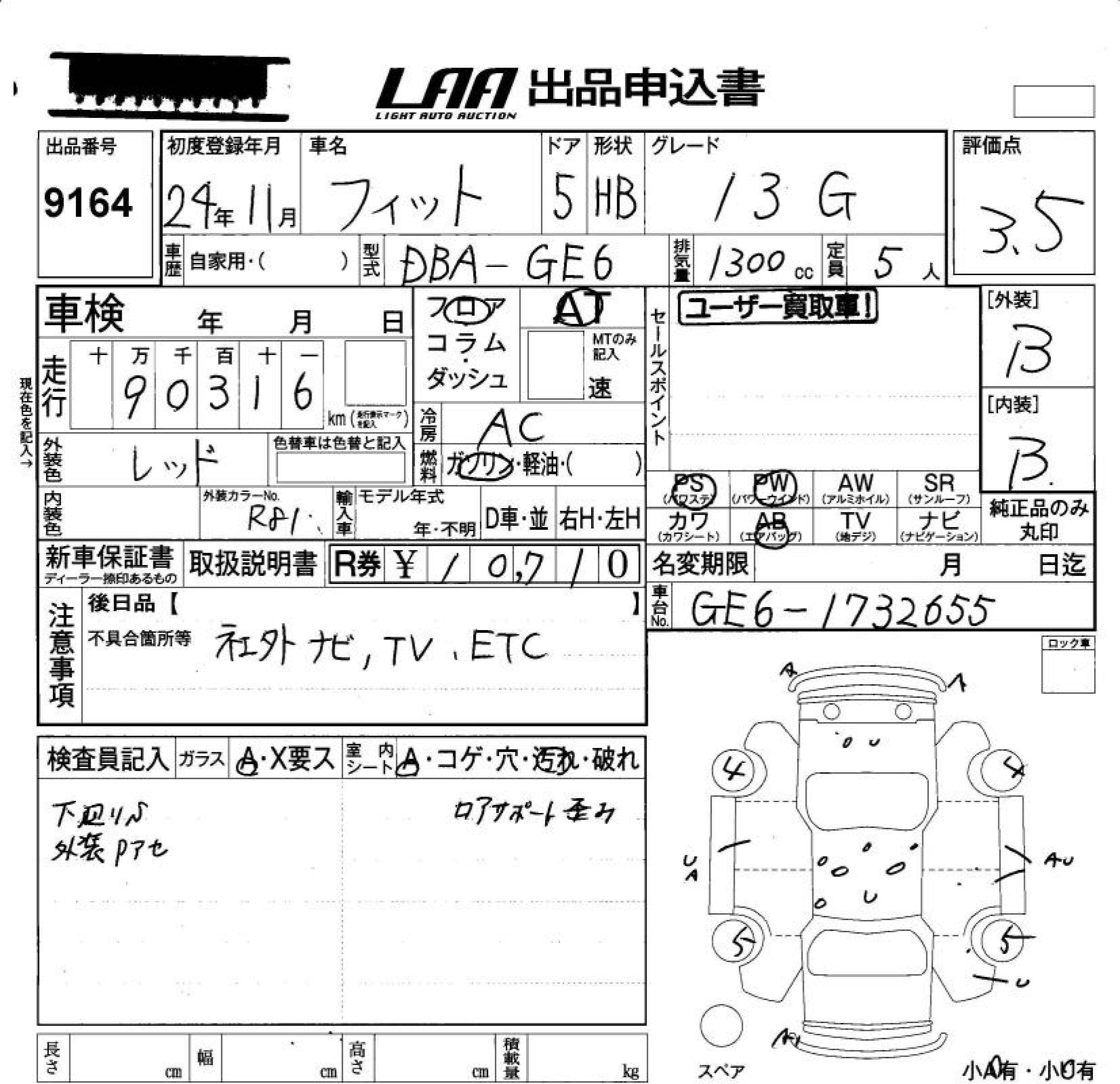 Honda Fit, 2012 года - Лот№9164 ★3.5