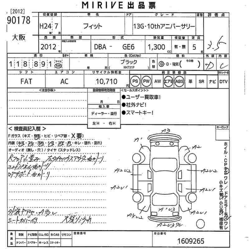 Honda Fit, 2012 года - Лот№90178 ★3.5