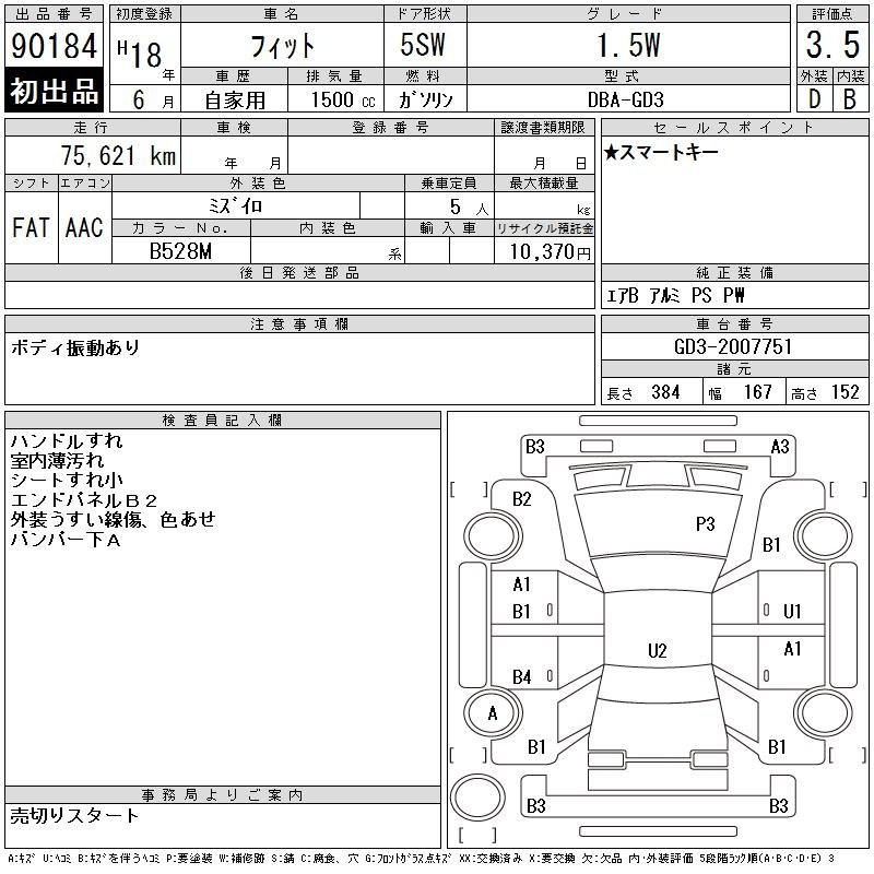 Honda Fit, 2006 года - Лот№90184 ★3.5