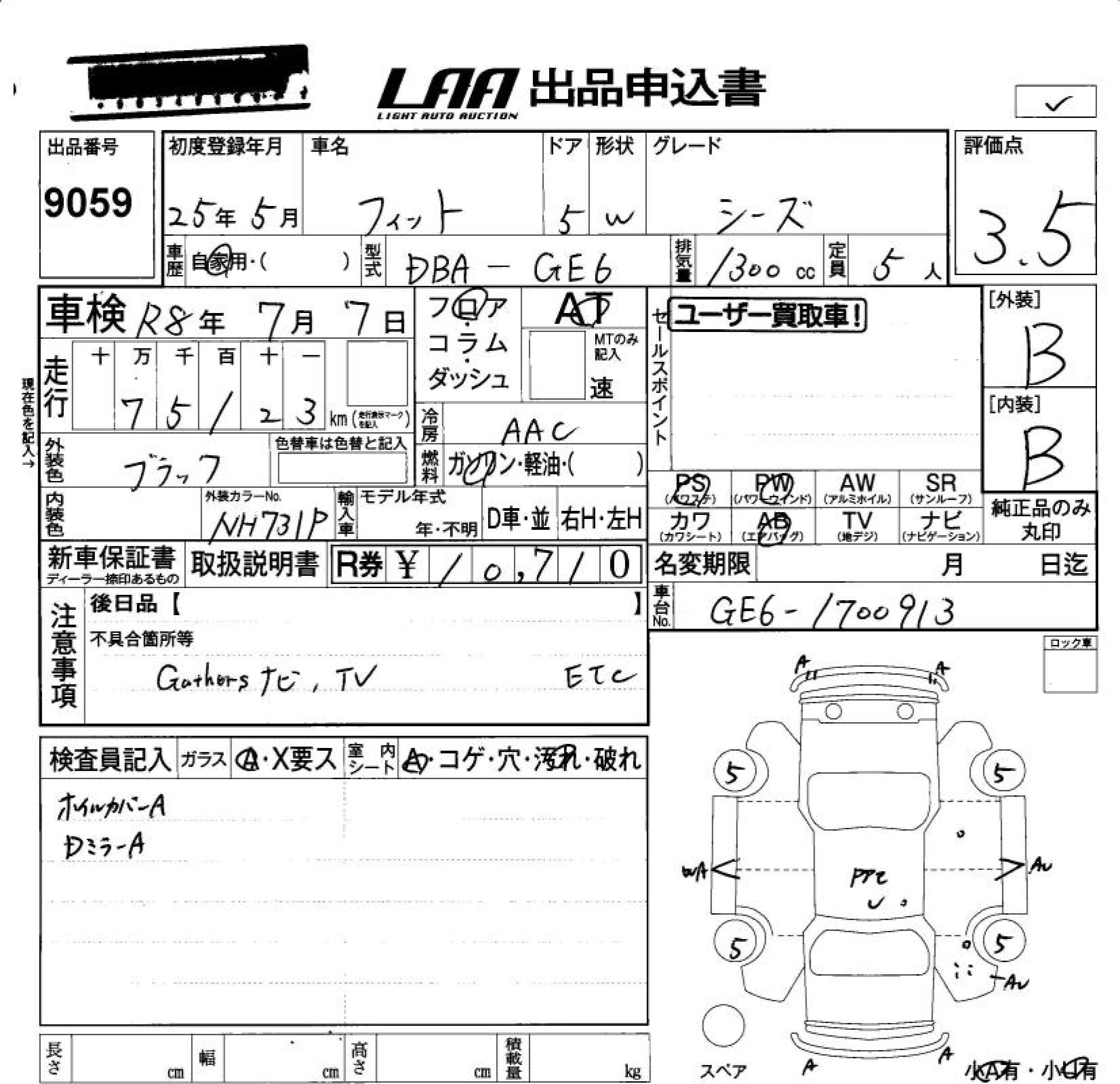 Honda Fit, 2013 года - Лот№9059 ★3.5