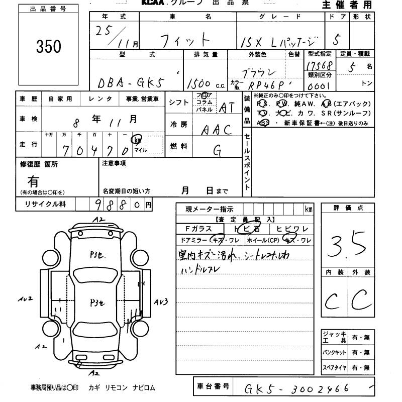 Honda Fit, 2013 года - Лот№350 ★3.5