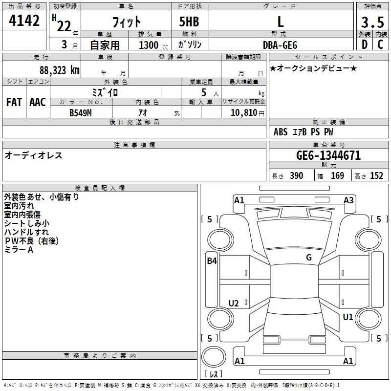 Honda Fit, 2010 года - Лот№4142 ★3.5