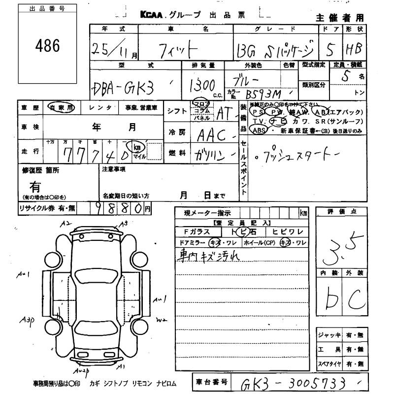 Honda Fit, 2013 года - Лот№486 ★3.5