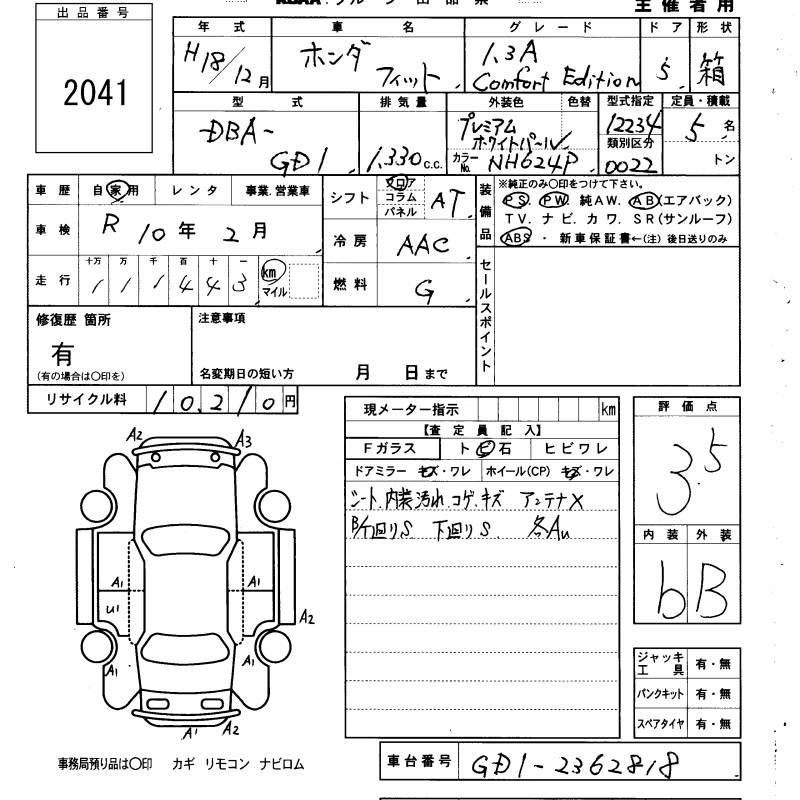 Honda Fit, 2006 года - Лот№2041 ★3.5
