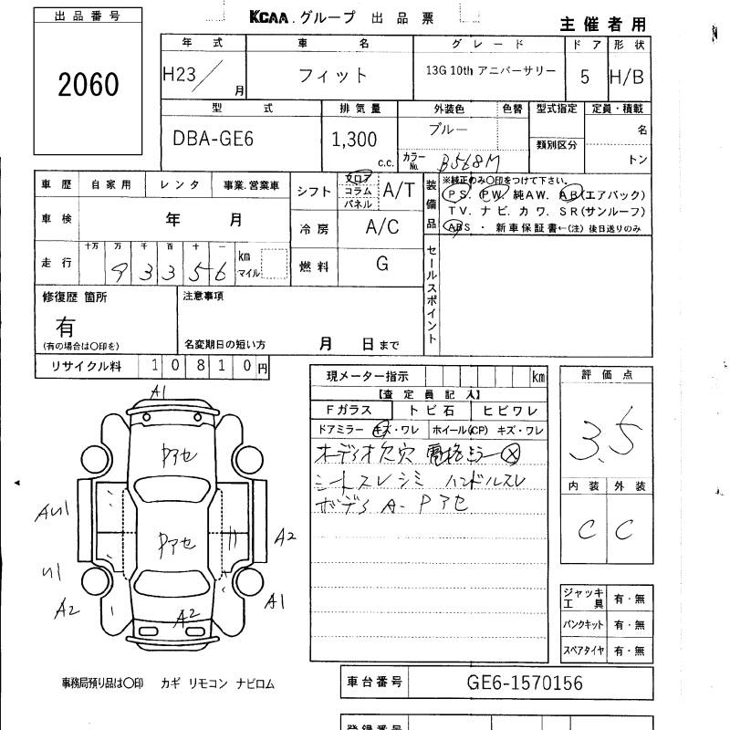 Honda Fit, 2011 года - Лот№2060 ★3.5