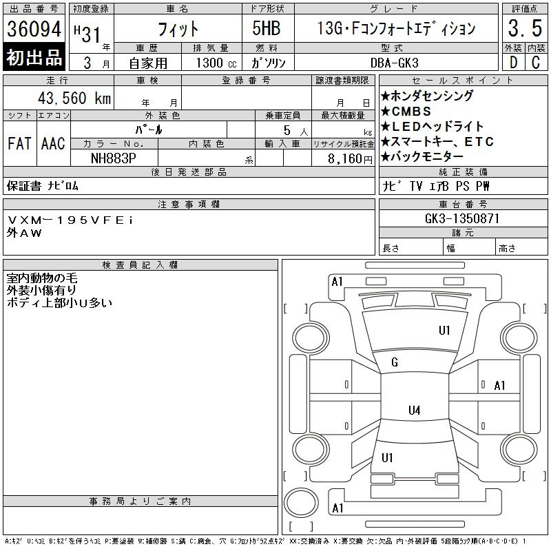 Honda Fit, 2019 года - Лот№36094 ★3.5
