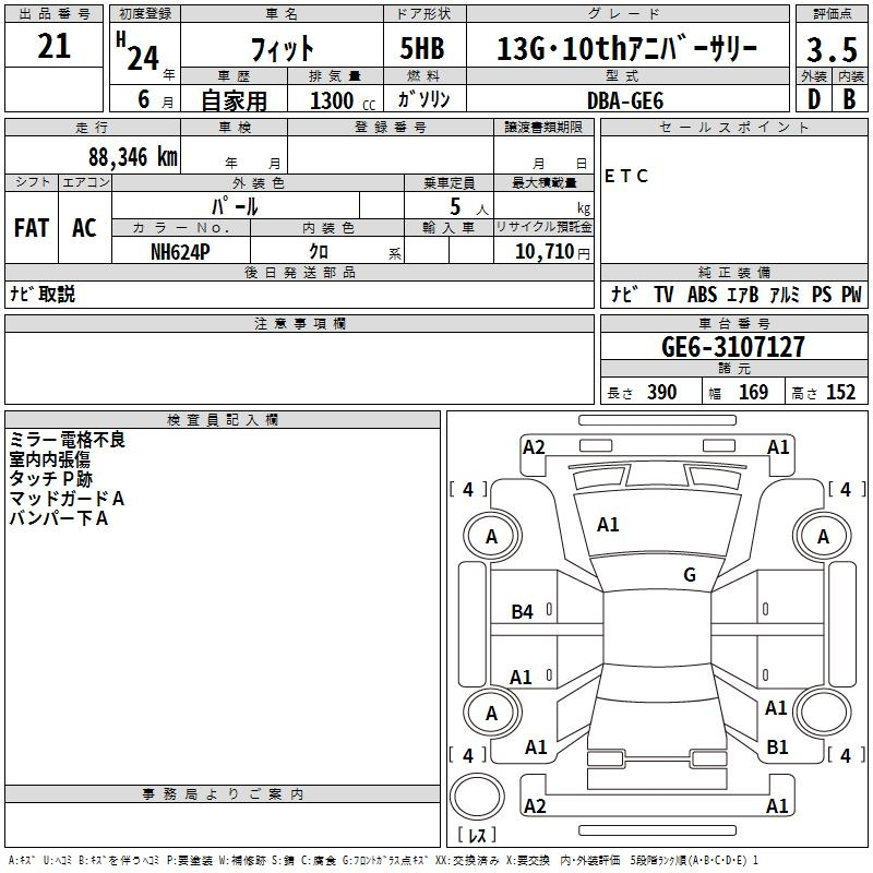 Honda Fit, 2012 года - Лот№21 ★3.5