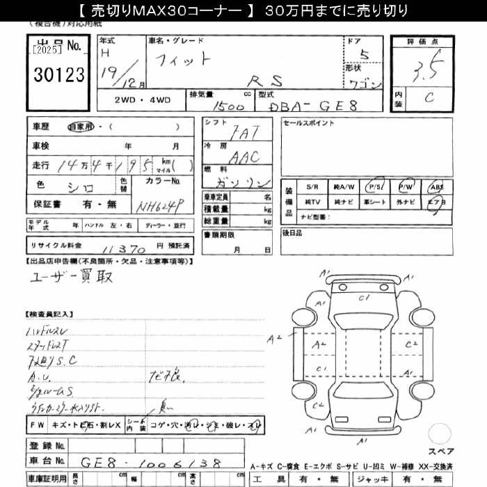 Honda Fit, 2007 года - Лот№30123 ★3.5