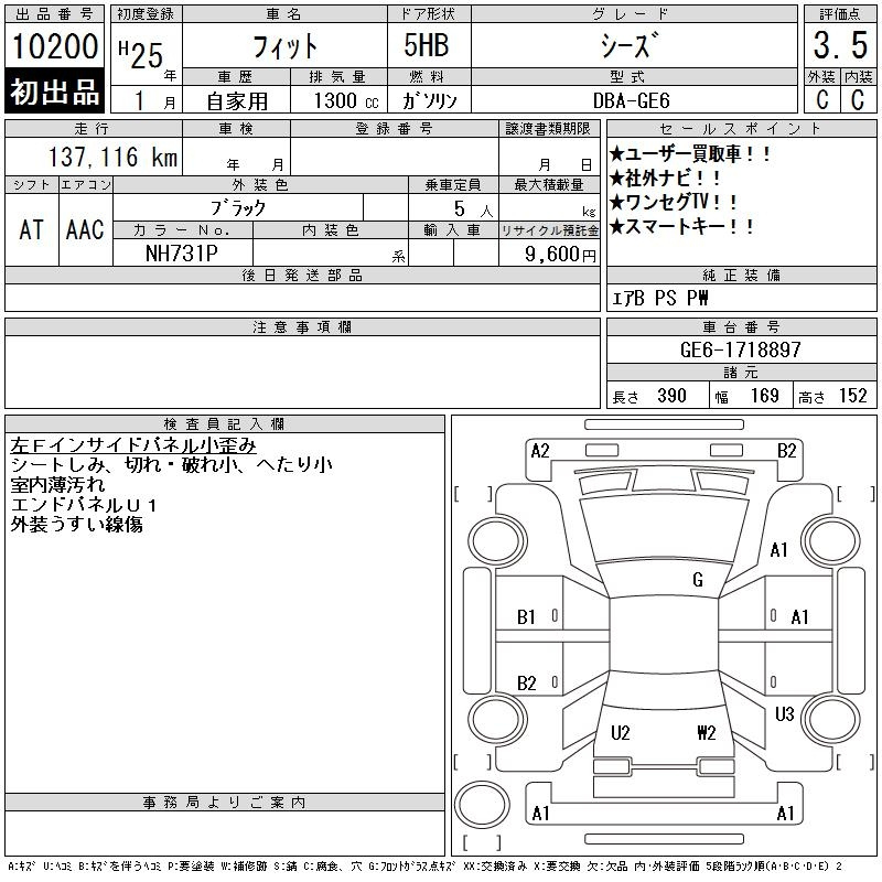 Honda Fit, 2013 года - Лот№10200 ★3.5
