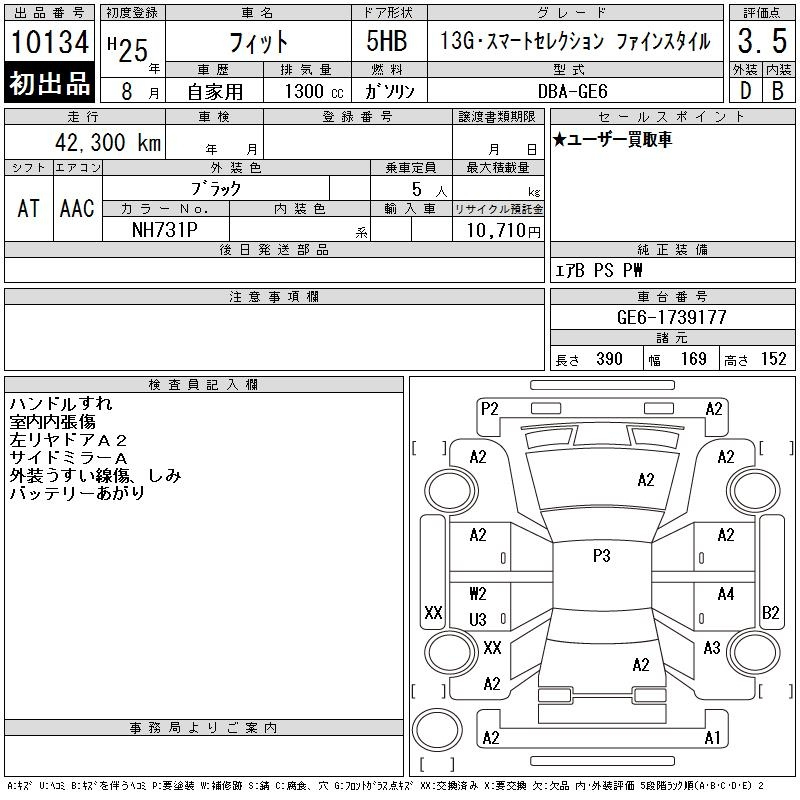 Honda Fit, 2013 года - Лот№10134 ★3.5