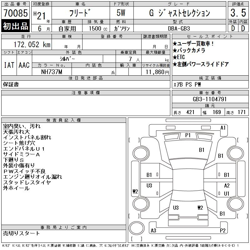 Honda Freed, 2009 года - Лот№70085 ★3.5