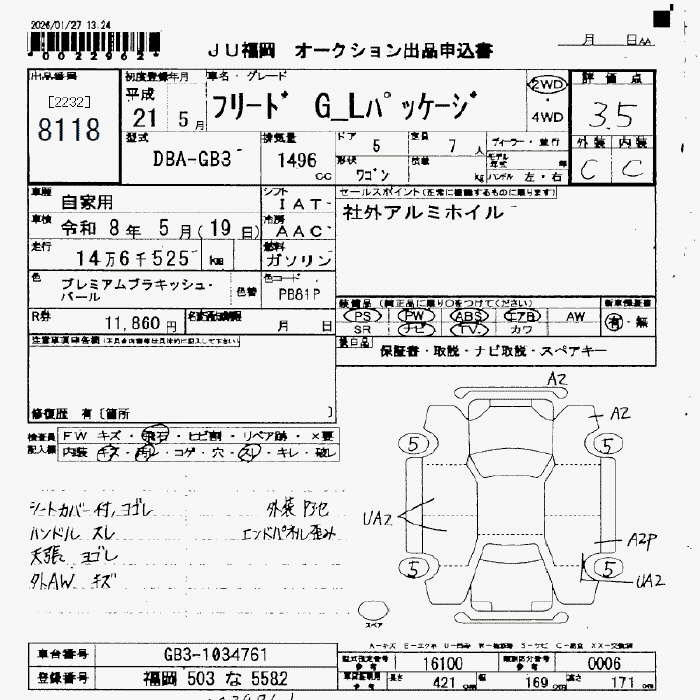 Лот№8118 01 Февраля 2026 года JU Fukuoka