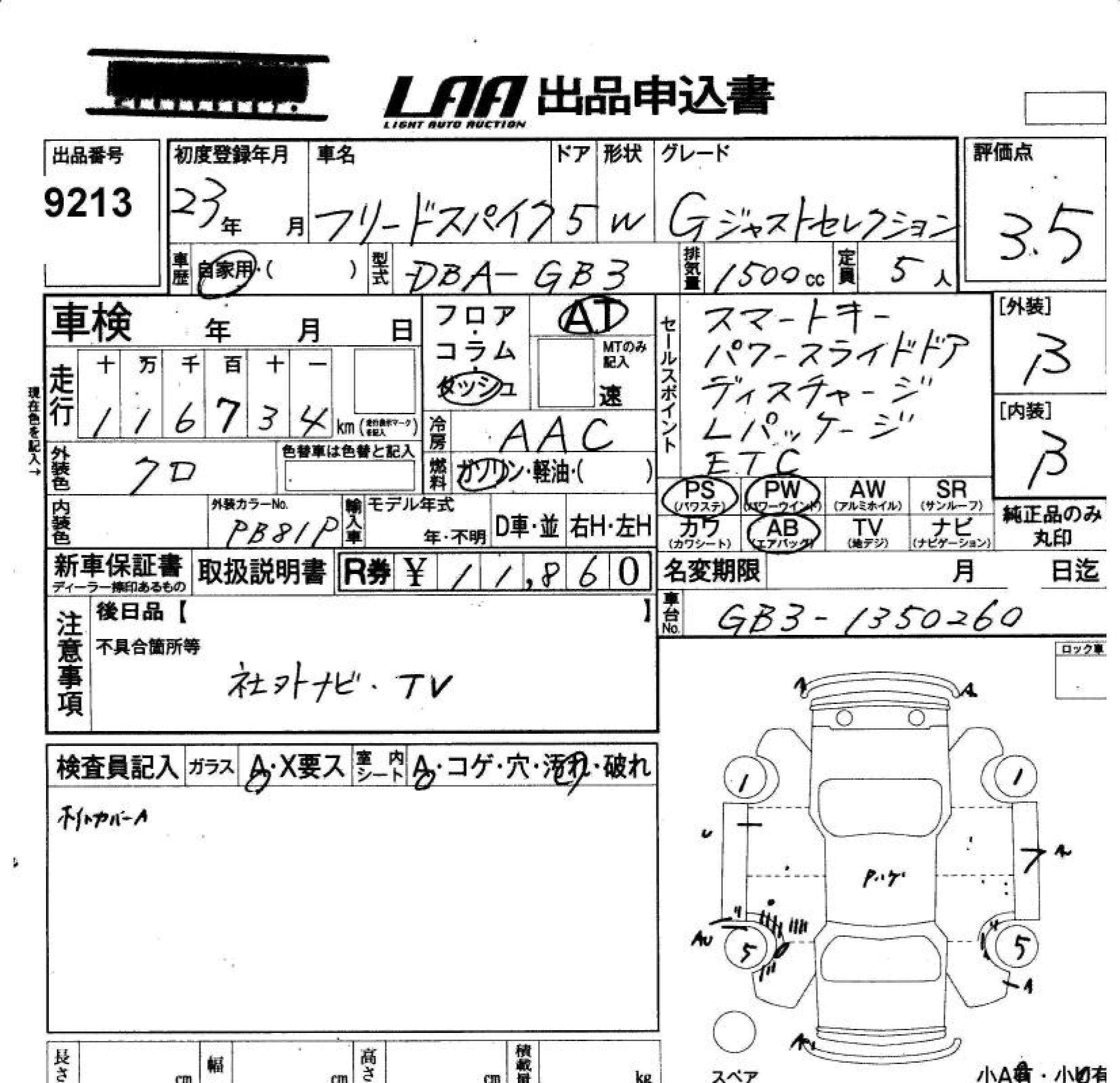 Honda Freed, 2011 года - Лот№9213 ★3.5