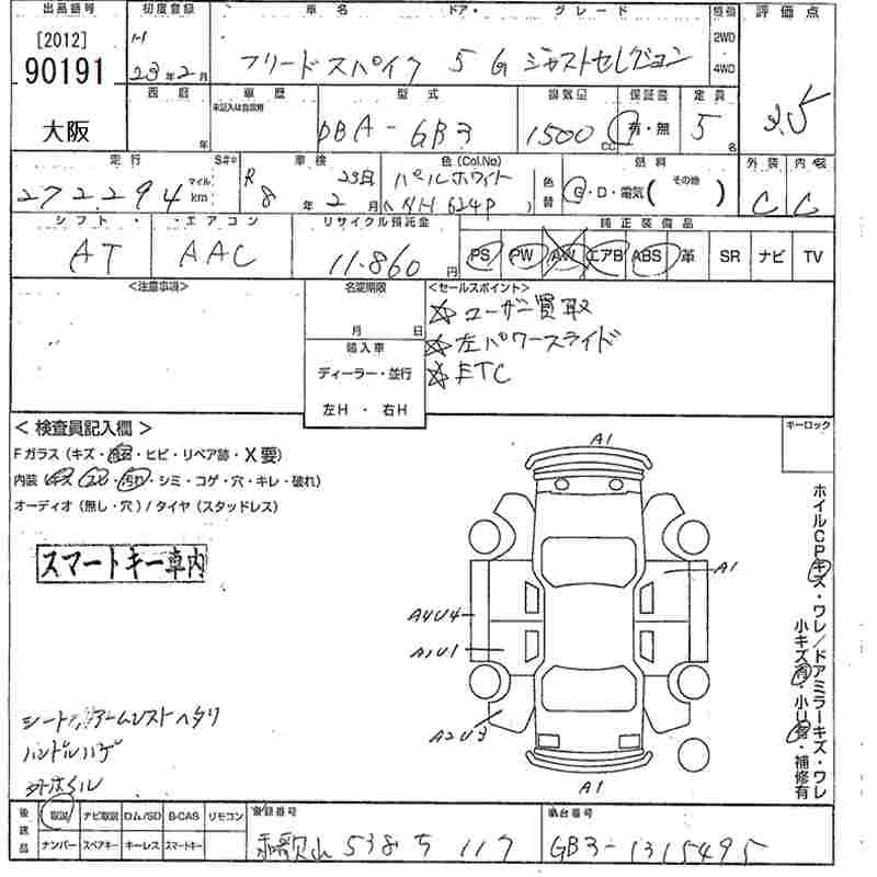 Honda Freed, 2011 года - Лот№90191 ★3.5