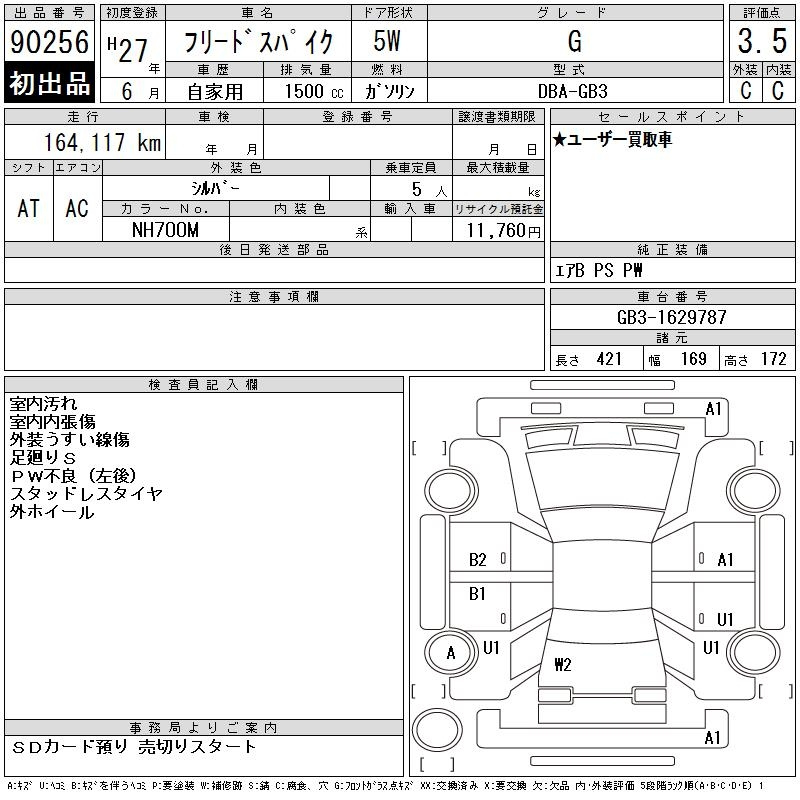 Honda Freed, 2015 года - Лот№90256 ★3.5
