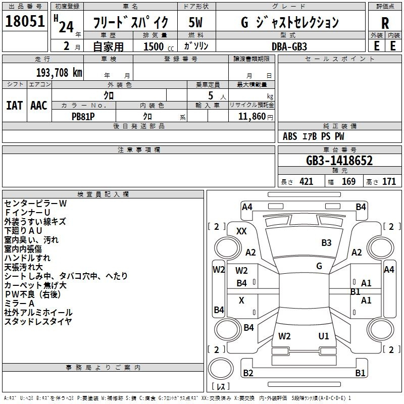 Honda Freed, 2012 года - Лот№18051 ★R