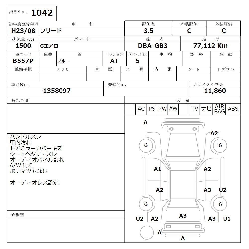 Honda Freed, 2011 года - Лот№1042 ★3.5