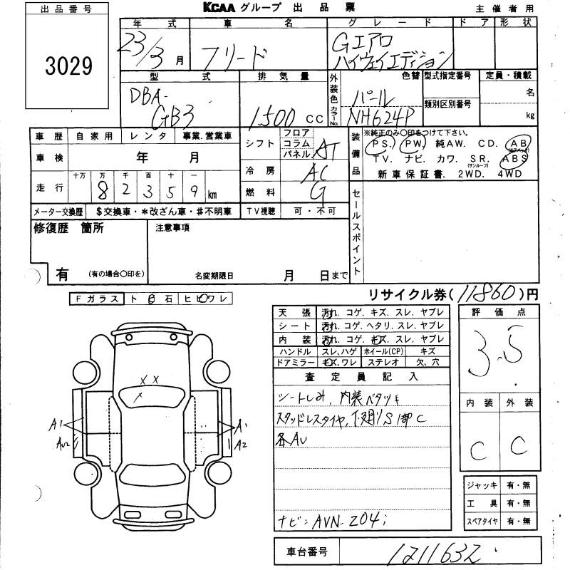 Honda Freed, 2011 года - Лот№3029 ★3.5