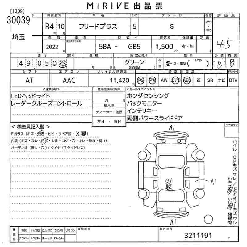 Honda Freed, 2022 года - Лот№30039 ★4.5