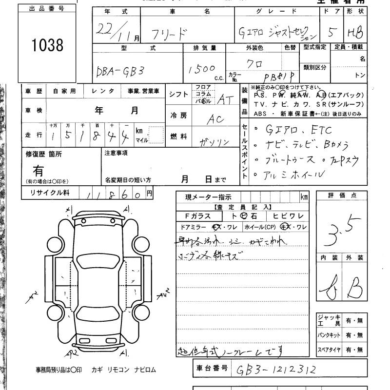 Honda Freed, 2010 года - Лот№1038 ★3.5