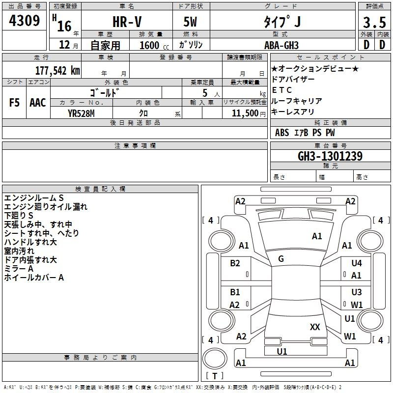 Honda Hr-v, 2004 года - Лот№4309 ★3.5
