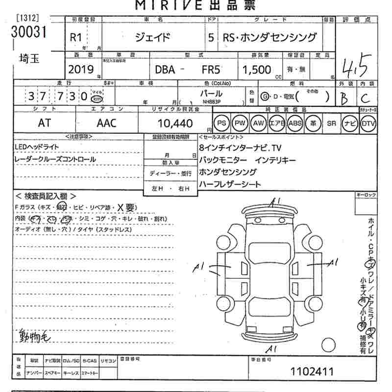Honda Jade, 2019 года - Лот№30031 ★4.5
