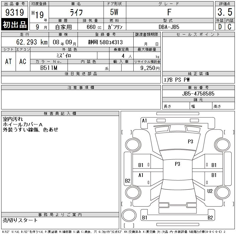 Honda Life, 2007 года - Лот№9319 ★3.5