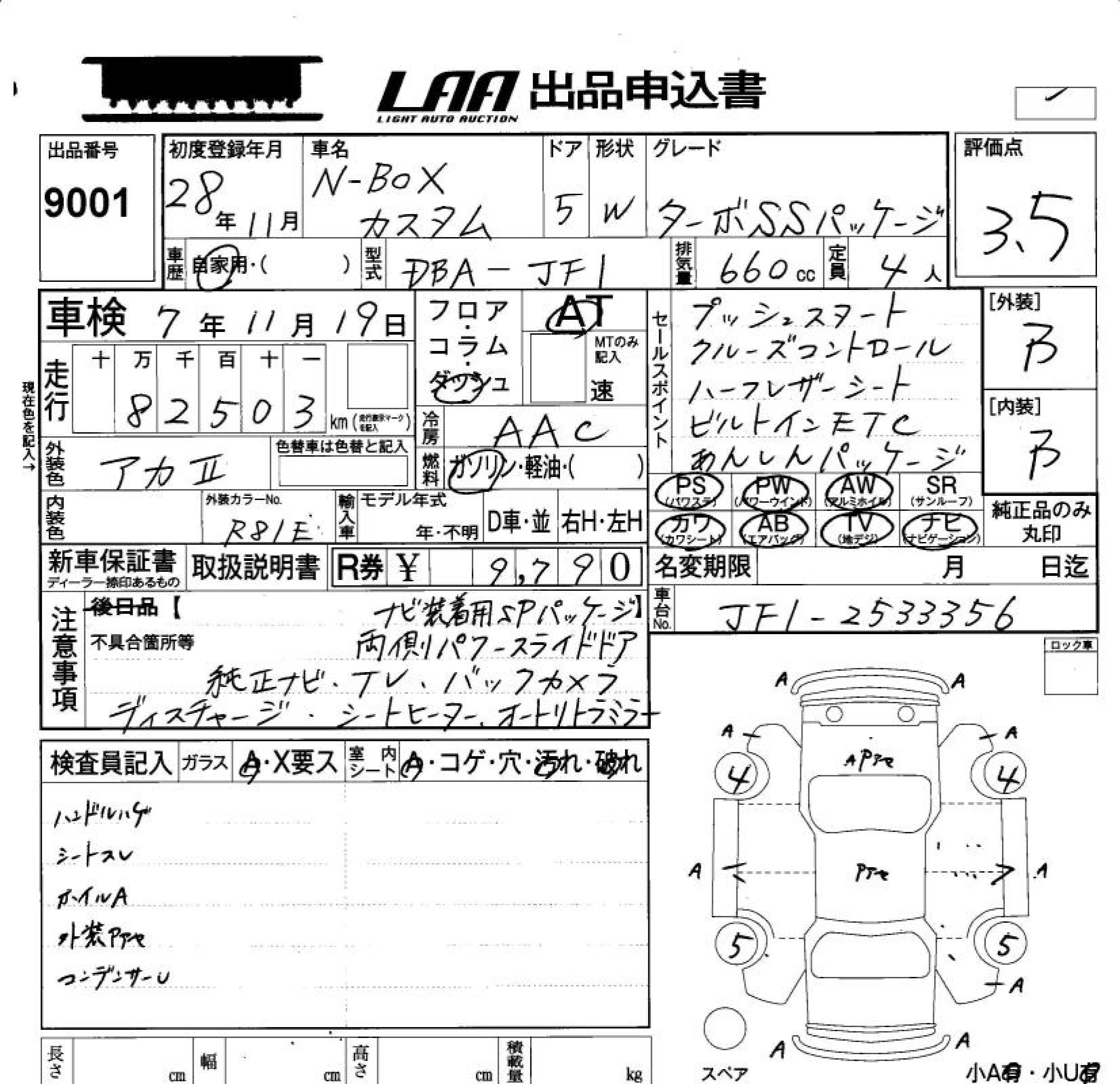 Honda N box, 2016 года - Лот№9001 ★3.5