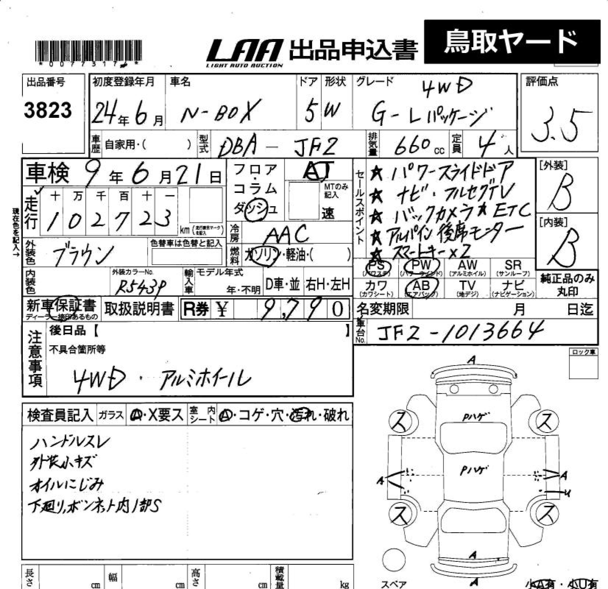 Honda N box, 2012 года - Лот№3823 ★3.5