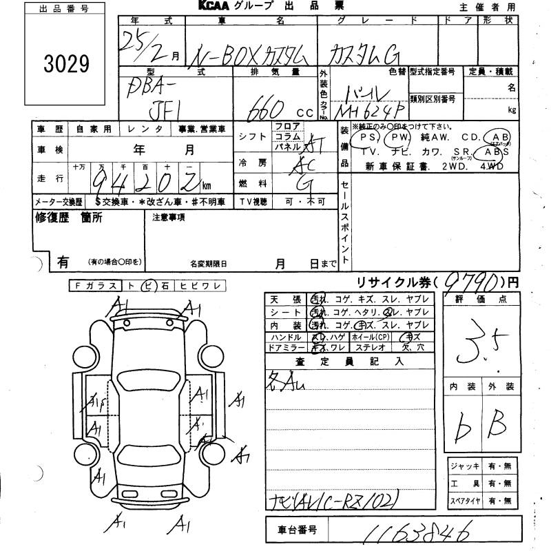 Honda N box, 2013 года - Лот№3029 ★3.5