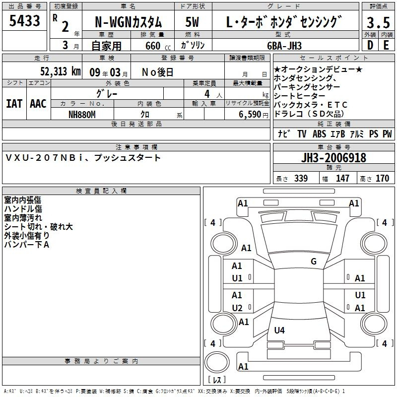 Honda N wgn, 2020 года - Лот№5433 ★3.5