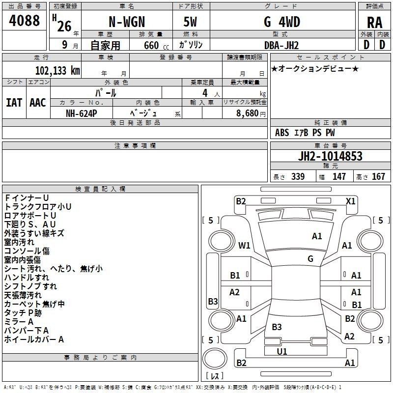 Honda N wgn, 2014 года - Лот№4088 ★RA
