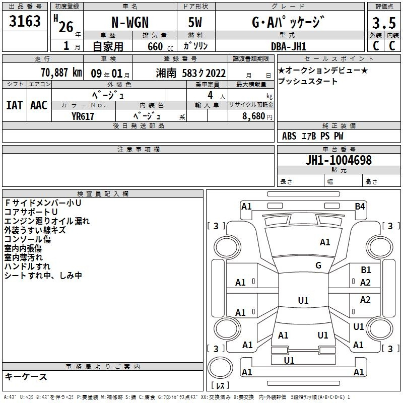 Honda N wgn, 2014 года - Лот№3163 ★3.5