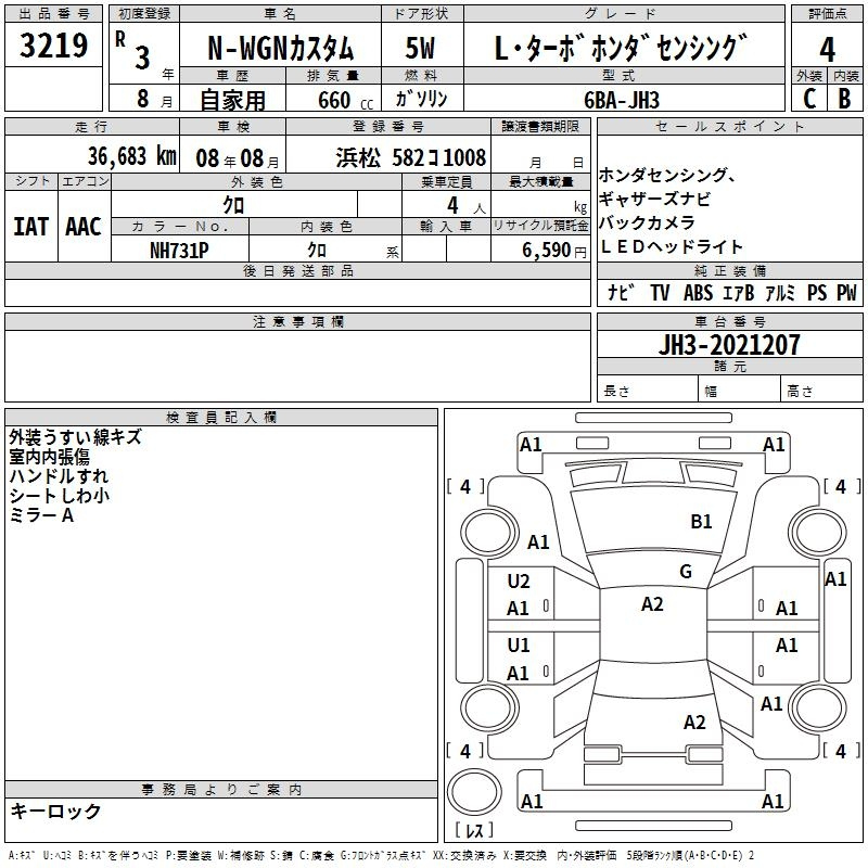 Honda N wgn, 2021 года - Лот№3219 ★4