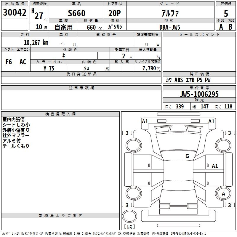 Honda S660, 2015 года - Лот№30042 ★4.5