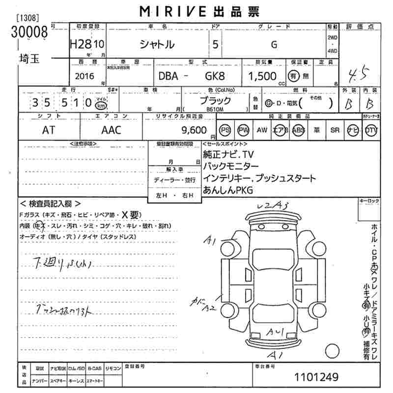 Honda Shuttle, 2016 года - Лот№30008 ★4.5
