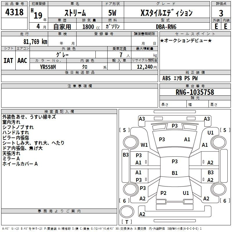 Honda Stream, 2007 года - Лот№4318 ★3